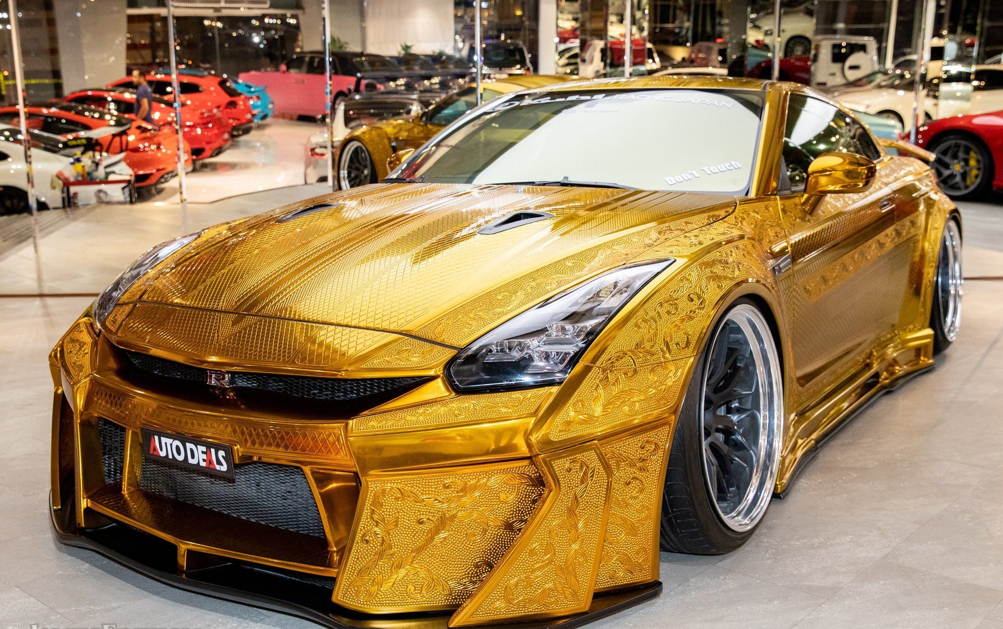 Fiel al diseño original del auto de Shiro Nakamura, este Nissan GTR se ha chapado en oro y sus detalles han sido esculpidos por las hábiles manos del maestro grabador Takahiko Izawa. Es una forma de aumentar el valor de un automóvil de 65.000 a 1 millón de dólares.