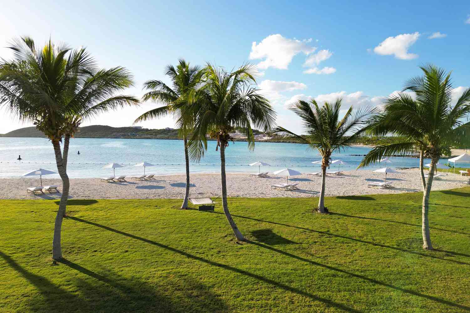 Rodeada de palmeras recién plantadas, la playa de poca profundidad es ideal para familias, mientras que la piscina oceánica, inspirada en Australia, ofrece a los huéspedes un lugar único para nadar y contemplar la puesta de sol, dice Bruce Maclaren, propietario de Wymara Resort and Villas.